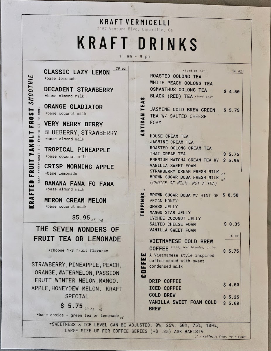 Welcome to Kraft Vermicelli, a charming cafe located at 2157 Ventura Blvd, Camarillo, CA 93010. Nestled in the heart of Old Town, this delightful spot has quickly become a favorite for locals and visitors alike. If you’re searching for a place that seamlessly blends delicious food with a vibrant atmosphere, look no further.